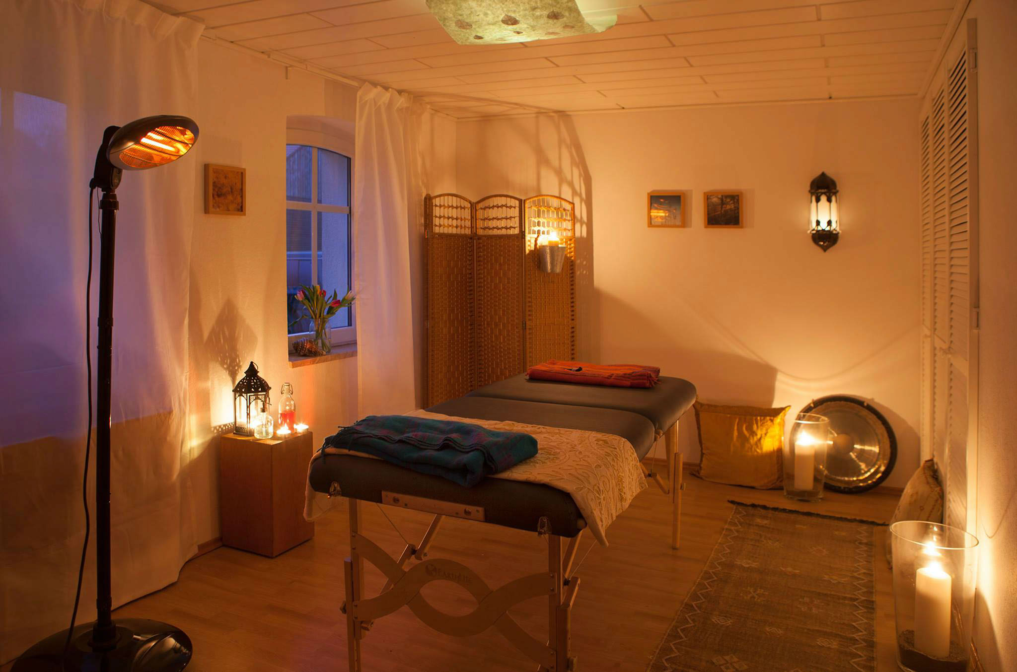 Der Therapieraum ist wandelbar und kann nach Bedarf ausgestattet werden mit einer Massageliege oder einer Gesprächsecke.