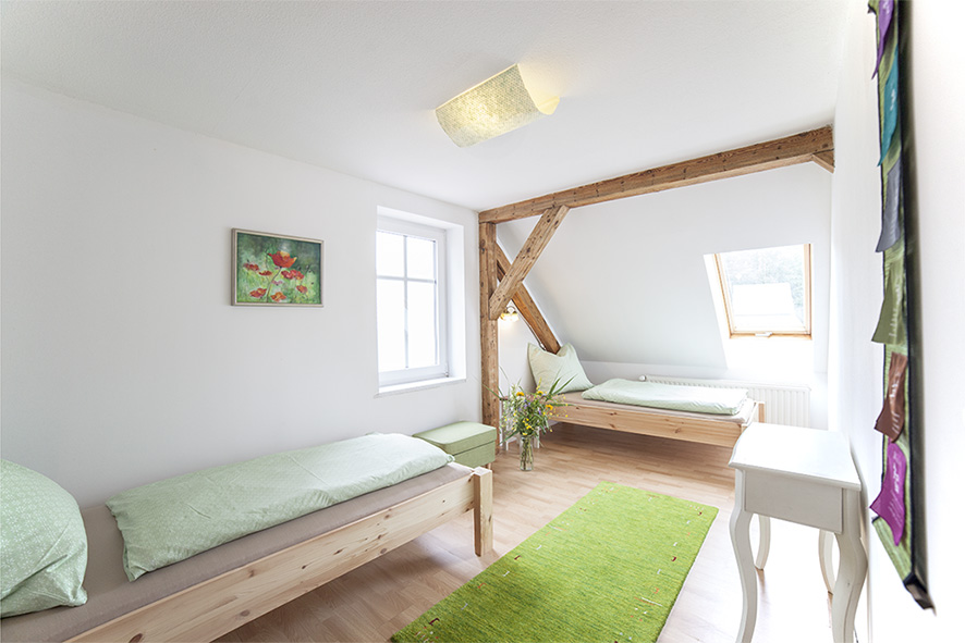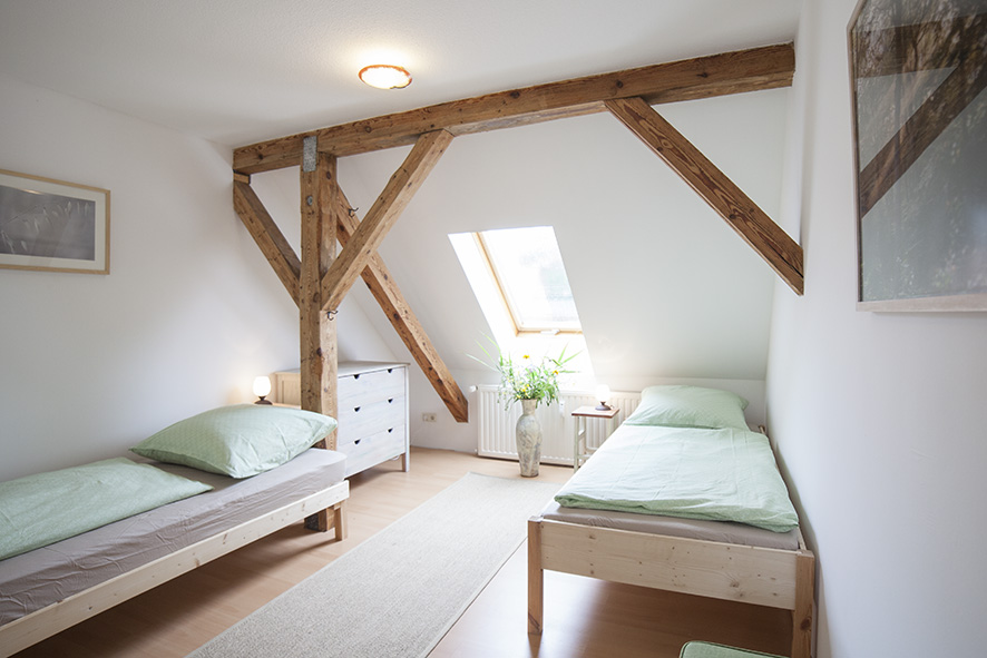 Unsere Gäste übernachten in drei Wohnungen mit individuellen Ein-/Zwei- und Mehrbettzimmern. Die Zimmer sind hell, freundlich und liebevoll eingerichtet. Pro Wohnung steht jeweils ein gemeinsames Badezimmer zur Verfügung. Derzeit können wir 15 Teilnehmer in Gästezimmern und 2 bis 6 weiter Gäste in zwei komplett ausgestatteten Ferienwohnungen mit eigenem Bad und eigener Küche unterbringen.